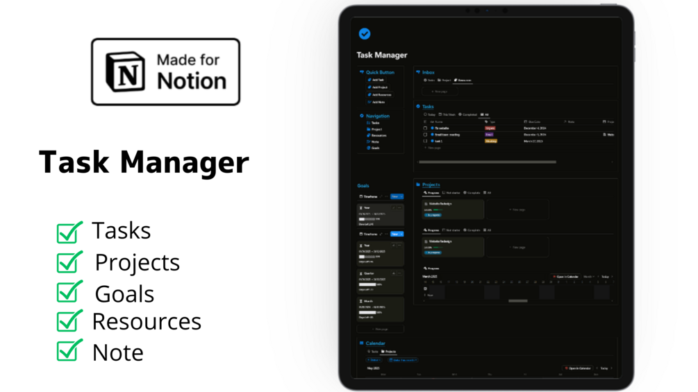 Introducing our innovative Notion template for task management, the perfect solution for anyone looking to organize their projects, tasks, and resources all in one place.